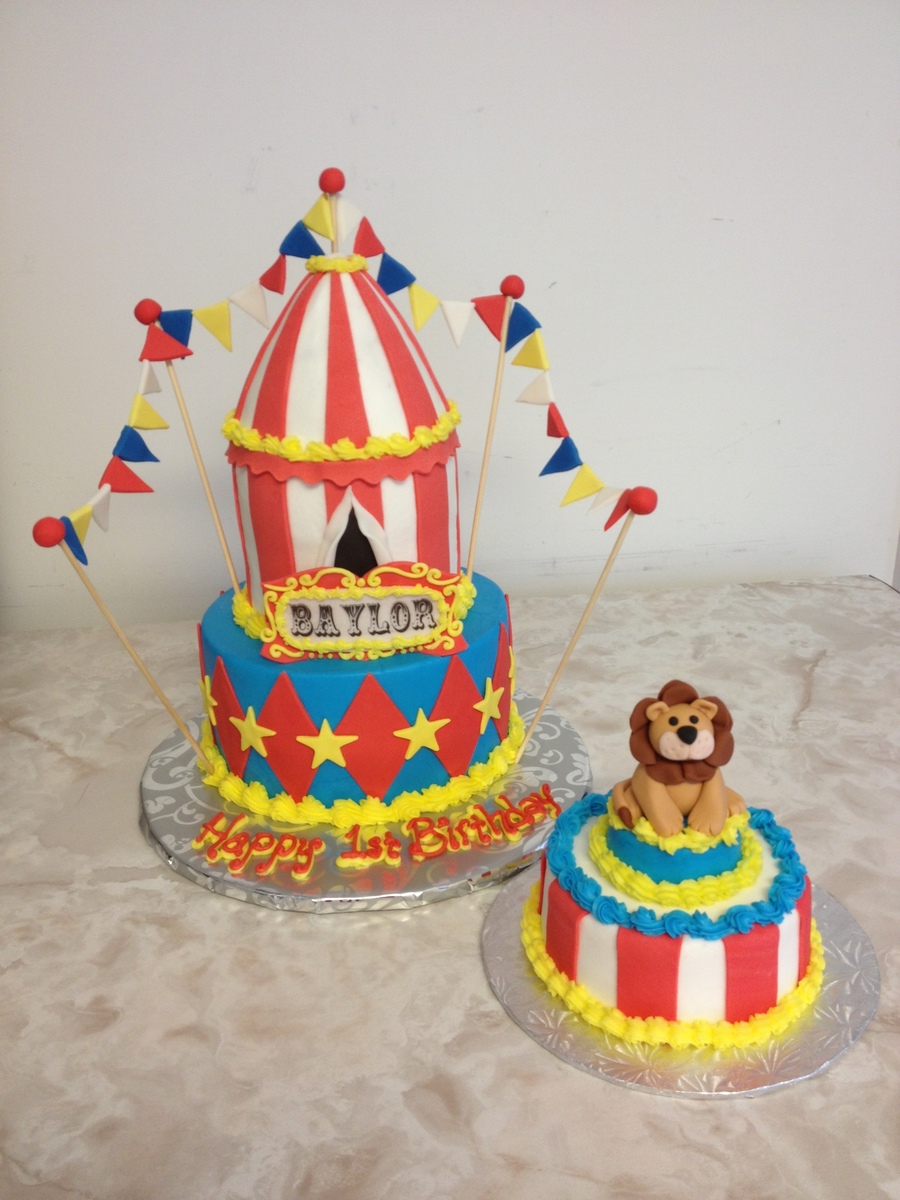Buttercream icing with fondant flags, stripes, diamonds and stars. The lion on the smash cake is also fondant.