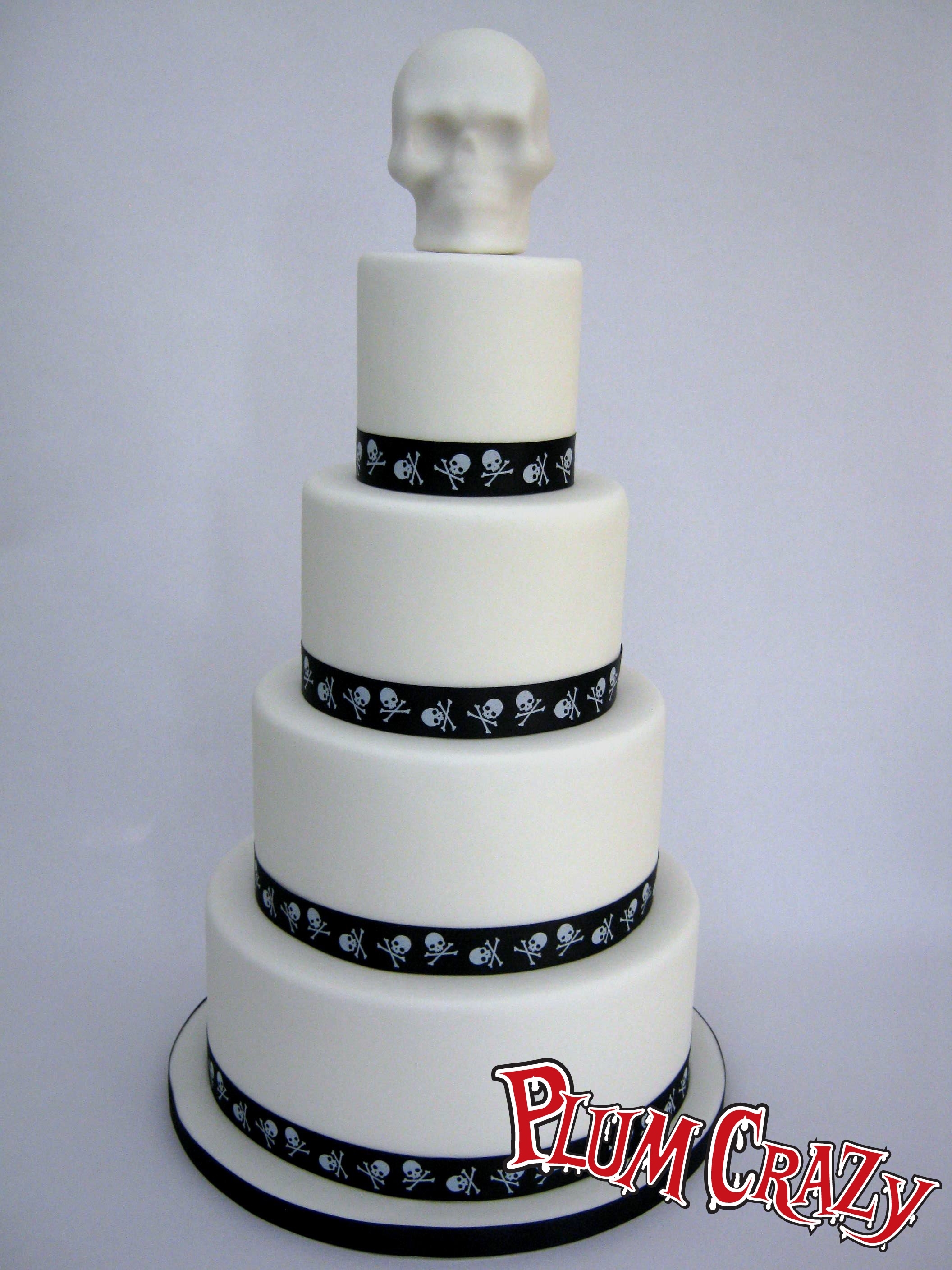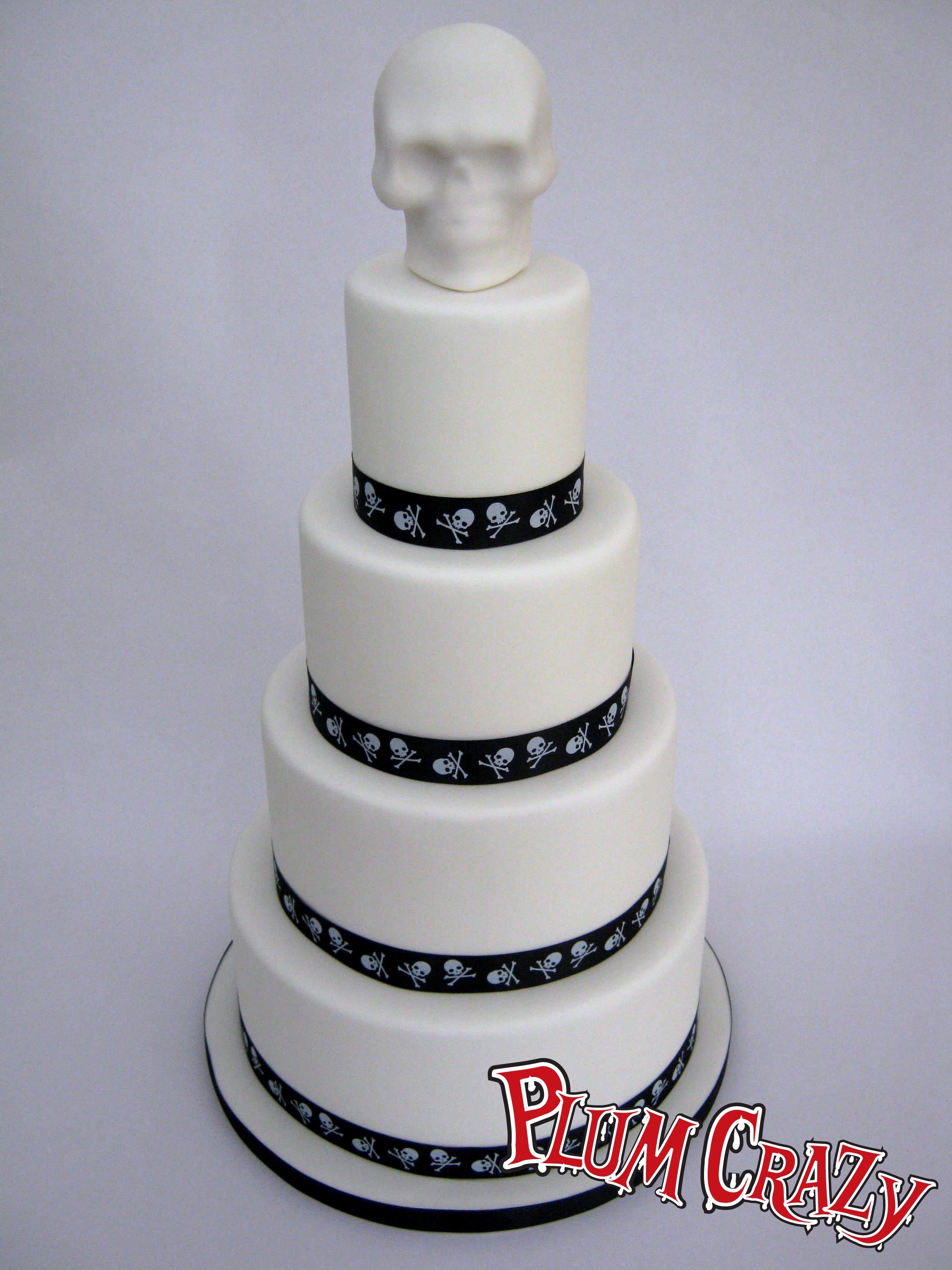 4 Tier Black & White Alternative Wedding Cake - Skulls