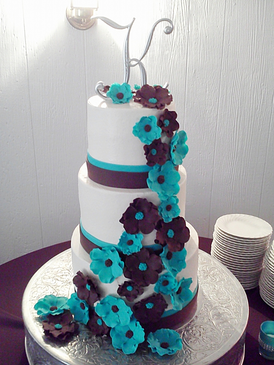 This cake was made for a good friends daughters wedding. When I arrived to set it up the table and the light behind it would move when someone walked by. There was no one there to say I could move the table. I was a nervous wreck, I set it up, called the MOB and told her it was not in a good place. A short time later the bride called and I went back and moved it. It was leaning, and in a mess! I took the flowers off and checked to be sure my structure was ok, put the flowers back on and it was just fine. VALUABLE lesson learned! Move the table even if no one says you can...lol!!