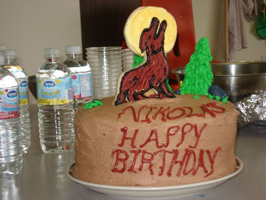 Butter cream icing, sugar cookie wolf. 1st wolf looked better, but broke about 3 hours before the party. Fortunately, I made 2 and whipped up some fresh RI to do this one.