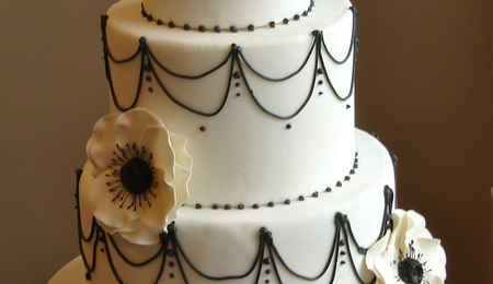 Modern, rustic wedding cake for an outdoor wedding. 4 offset tiers with fondant twig border and handmade sugar flowers consisting of sunflowers, ranunculus, billy balls, berries, and pulled sugar blossoms.