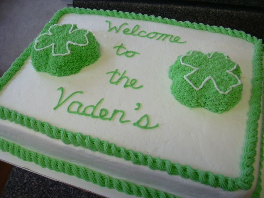 Made 2 of these for a customer for a house-warming party. The only directions I had were that a sheet cake was fine but that she somehow wanted shamrocks and wanted the words you see.