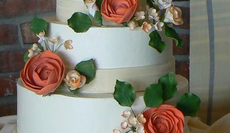 Roses And Blossoms On A Wedding Cake