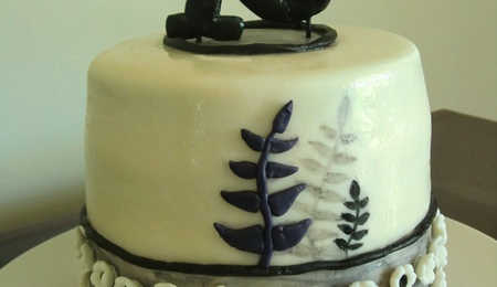 I've been getting alot of requests for this cake lately. I've tried a couple of different ways for the collar- fondant with tylose or modeling chocolate. I like modeling chocolate better if it's not hot weather.