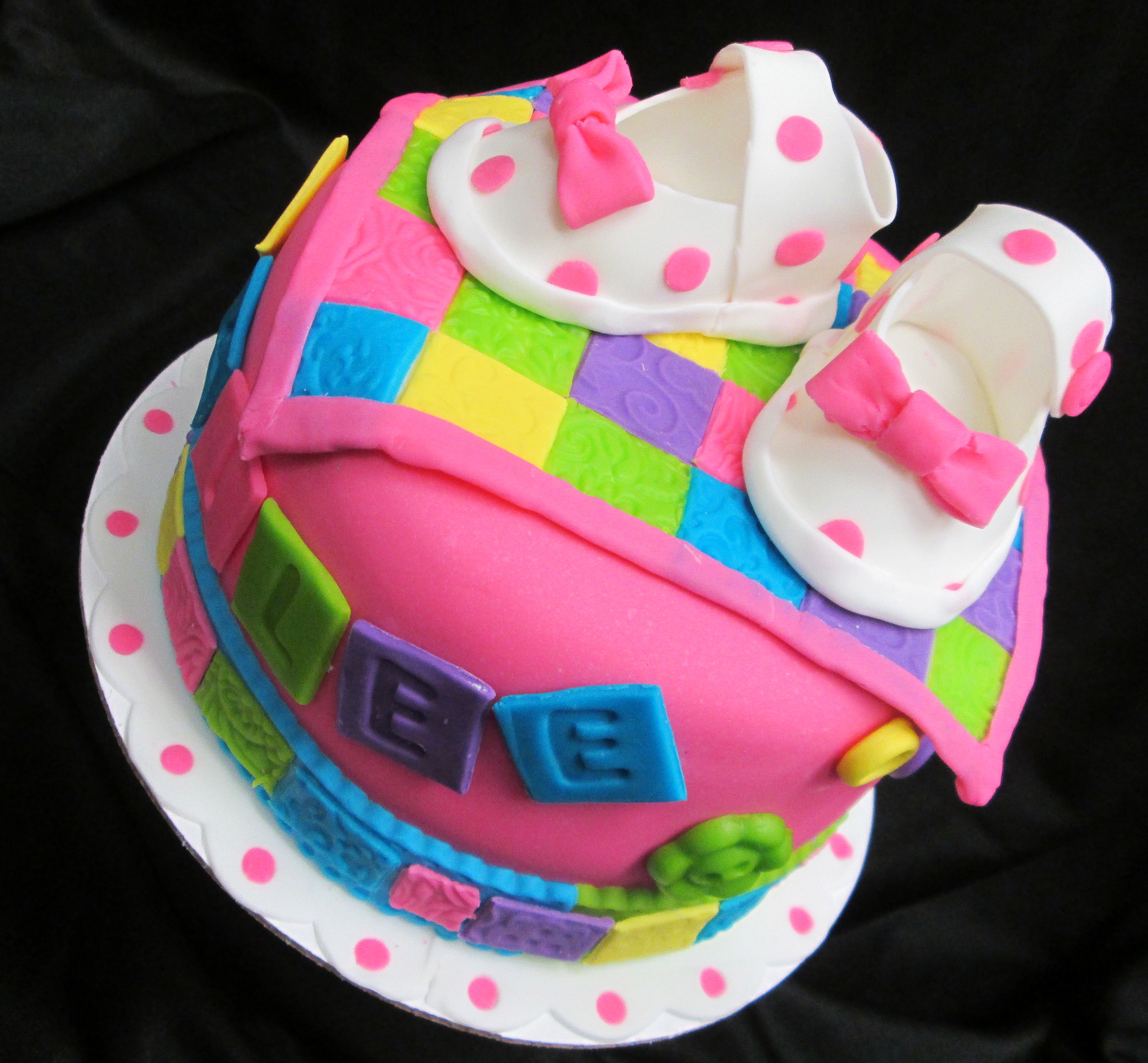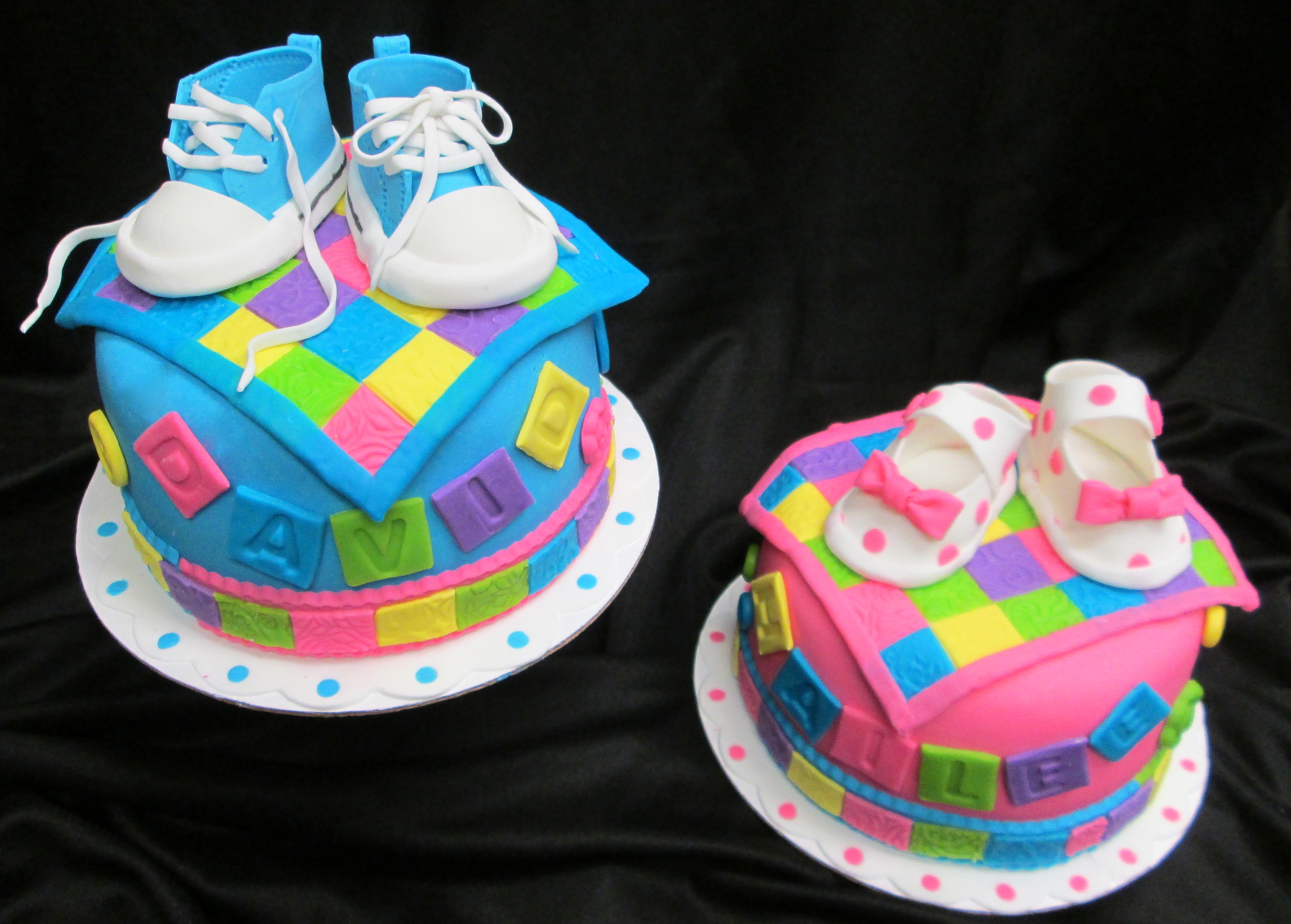Baby Shower cake for a co-worker. My first time to make baby shoes!