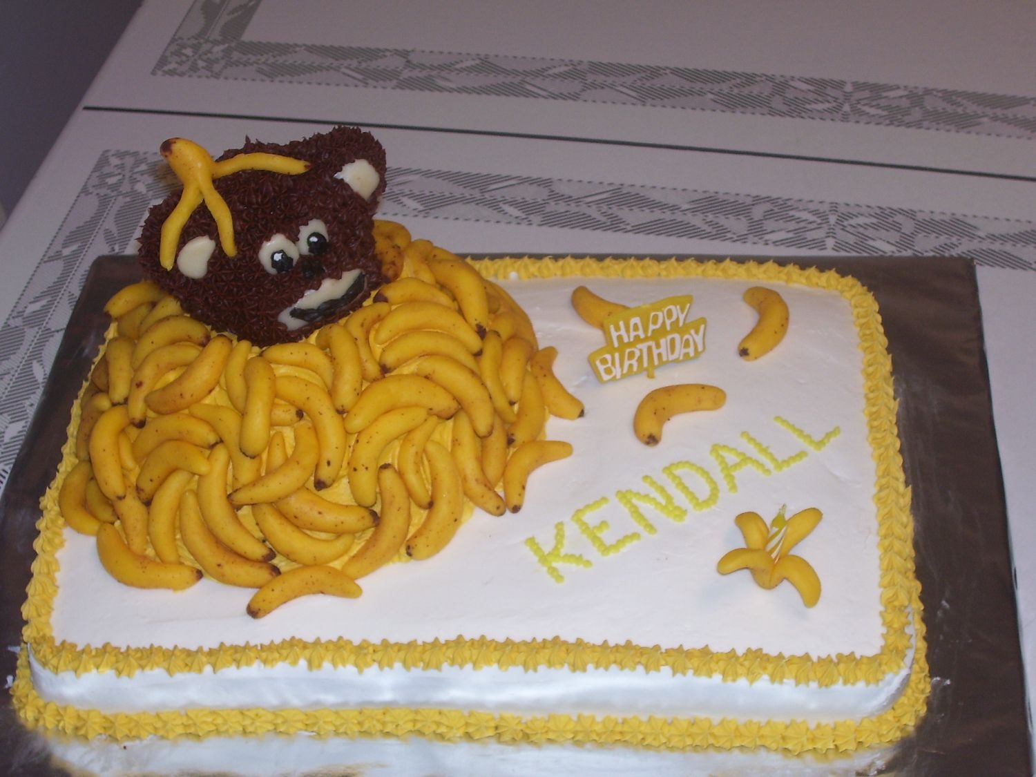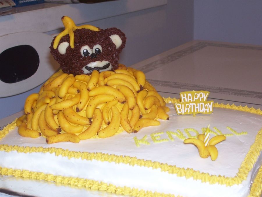 I don't know, I think he looks like a monkey :lol: I LOVE the banana peel on his head and holding the candle! Love your creativity!!!!! Was the cake banana flavored??