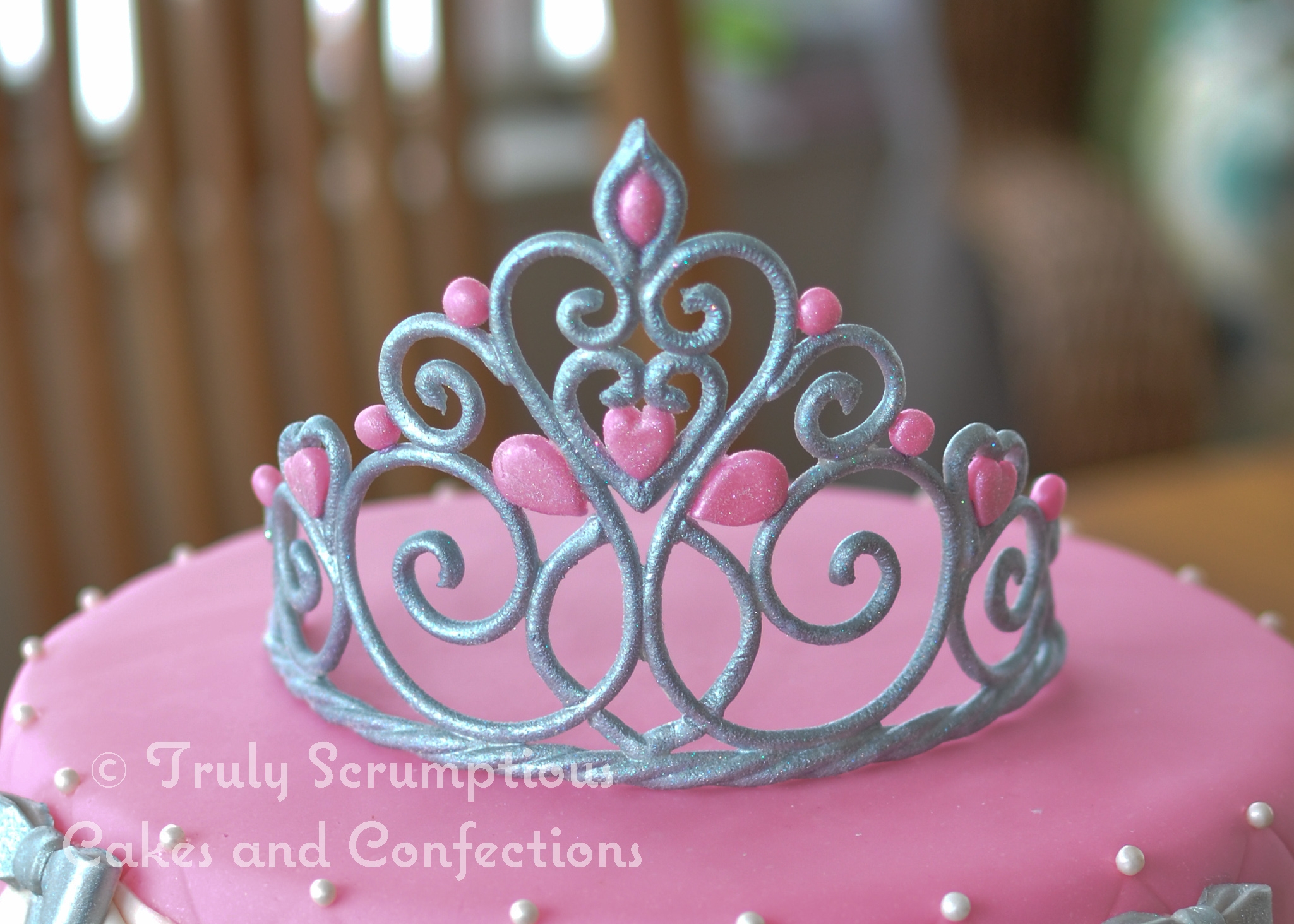 Your crown is beautiful! Are the pink gems fondant or gumpaste as well? And what did you do to get that silver look? I guess I'm asking how you made it :)