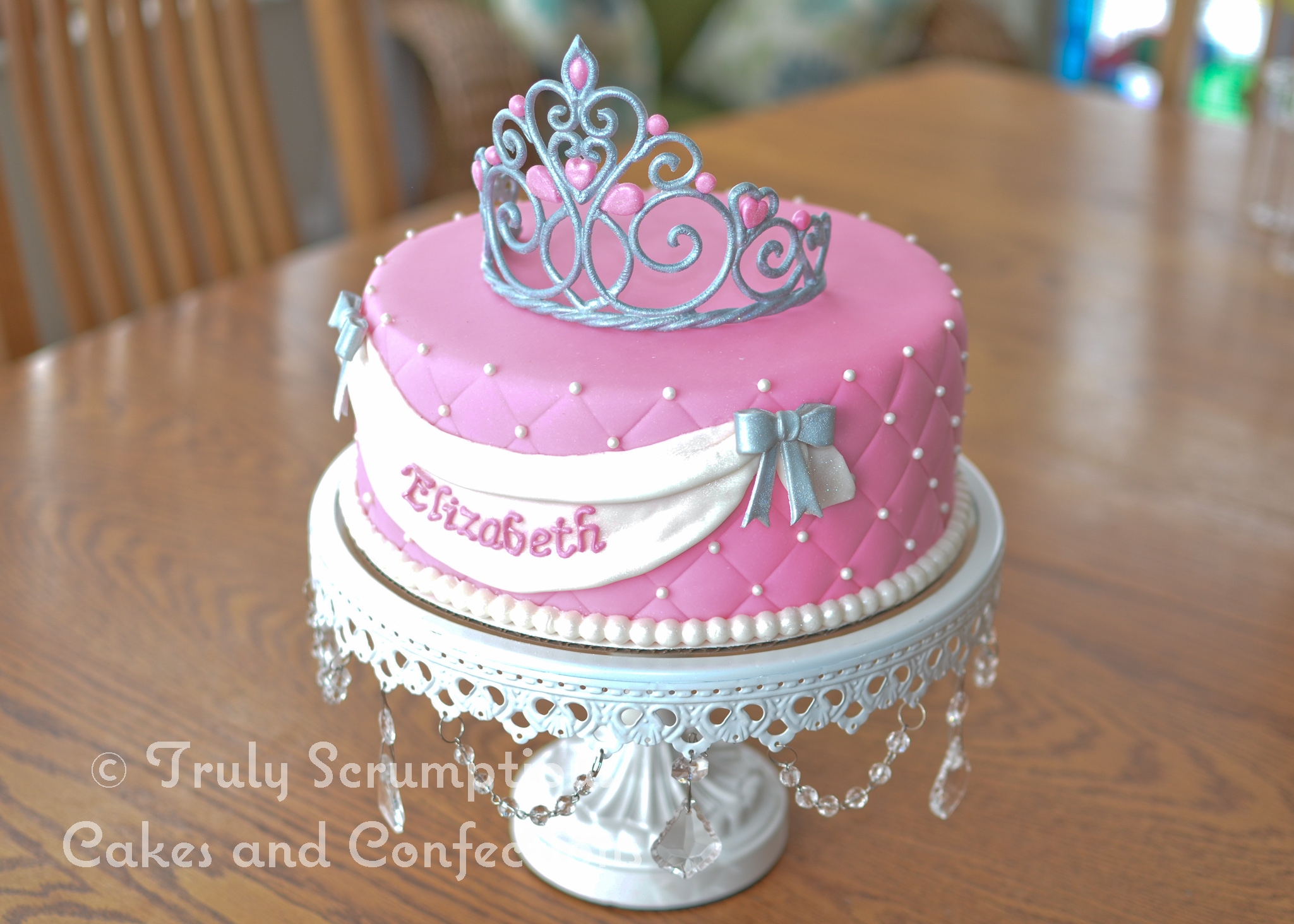 Princesstiara Cake 9 Round Chocvanilla Marble Cake Hand Made Gumpaste Tiara And Fondant Swag