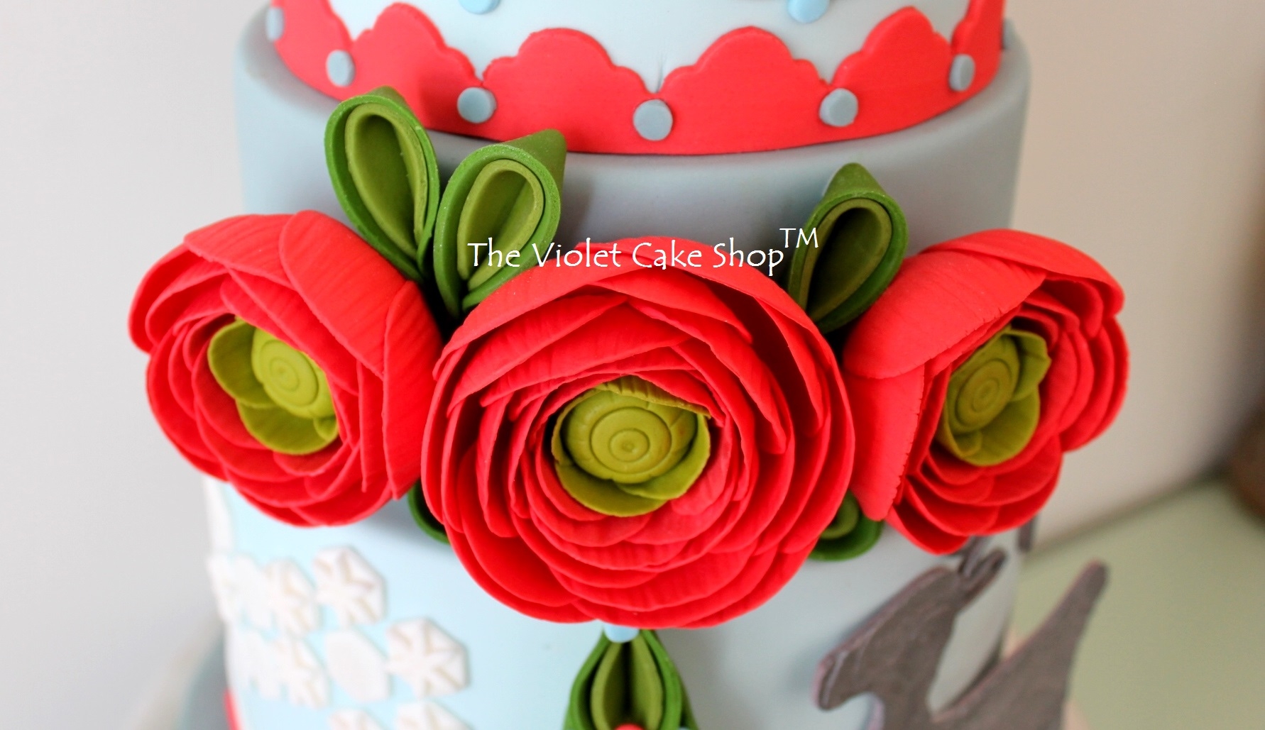 I had wanted the reindeer to be centred in the bottom tier but I had a few issues with a new recipe for Pumpkin Spice cake that I was experimenting with (who else to experiment on than family? lol). The cakes came out of the oven nice and fluffy and I couldn’t have been happier. But as they cooled, they settled and the fluffiness became denser and I lost about an inch and a half on each tier. So the reindeer would no longer fit in the centre with the ranunculus flowers overhead so I had to improvise and move the reindeer to the right. I actually think it ended up better over there…at least I tell myself that lol. ENJOY and blessed New Year to ALL!