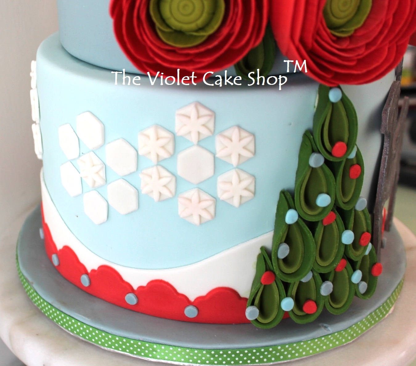 I used my two-tone petals again to make up my Christmas tree and as the petals that surround the ranunculus in the middle tier and of course on my wreath topper again. I was SO happy with how my ranunculus turned out! I used gumpaste this time and let my petals form their shape in soup spoons for about 30 mins before applying them. I used my own method of making the ranunculus after studying tonnes of ranunculus flowers I saw on other people’s cakes including The Crumb Coat, Kara’s Couture Cakes’ wafer paper version and Anna Craig on CC. The cake itself on the other hand did not turn out exactly as planned.