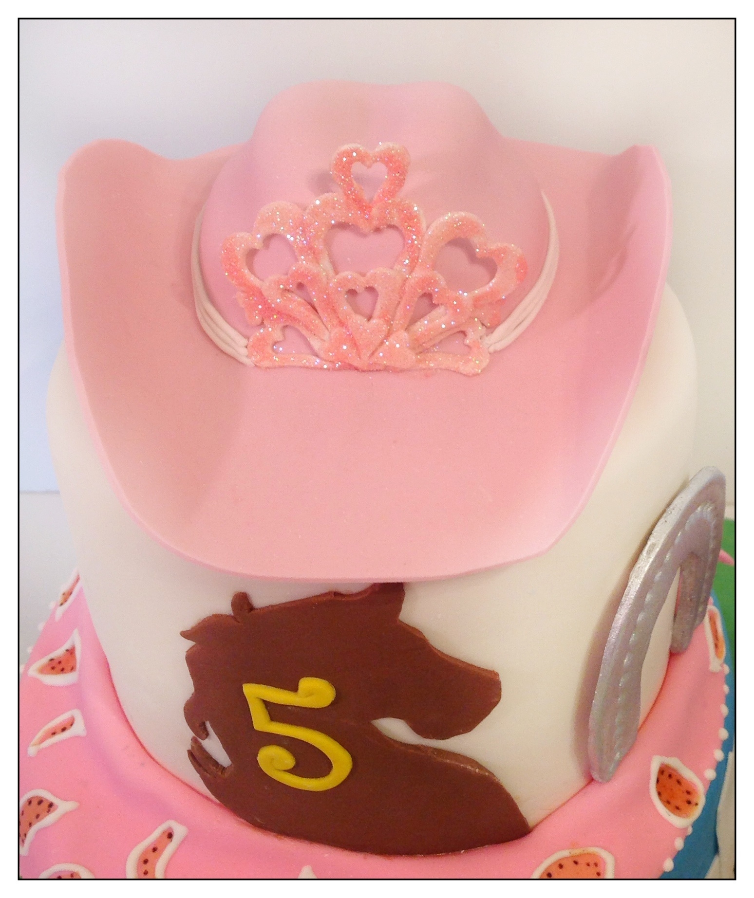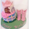 Vanilla cake with cookies and cream filling. Iced in SMBC and fondant. Fondant accents. Gumpaste hat and boots. I enjoyed making this cake for my grandaughter's 5th birthday, and she loved it especially since she owns pink cowgirl hat and boots. I also made matching cookies for the guest --- oh, and don't know who to give credit to since her mom just brought me a pic of what she wanted. TFL