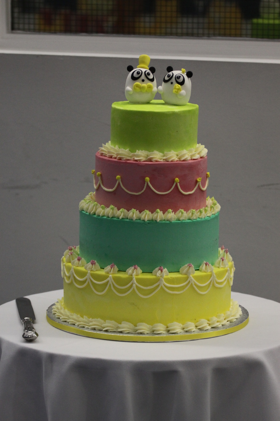 Chocolate, Vanilla Sponge, Carrot Cake and Lemon Sponge layers covered in butter cream
