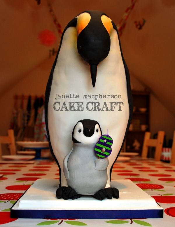 Emperor penguin cake, baby penguin too. Birthday cake for my daughter. 17" tall!