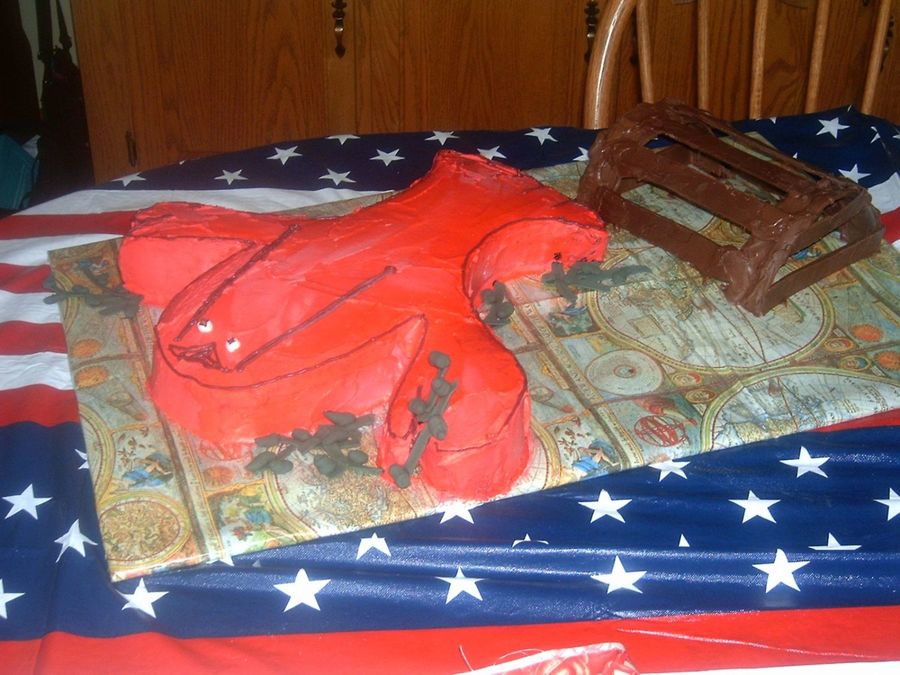 I melted chocolate and then when it was cool enough I cut out the pieces - I should have used more wax in the choc. it wasn't stable enough. The lobster was made from a 9x12 or 11x 15 pan - not sure which then the claws were made from the cut out portions of the tail where I had sculpted the tail piece.