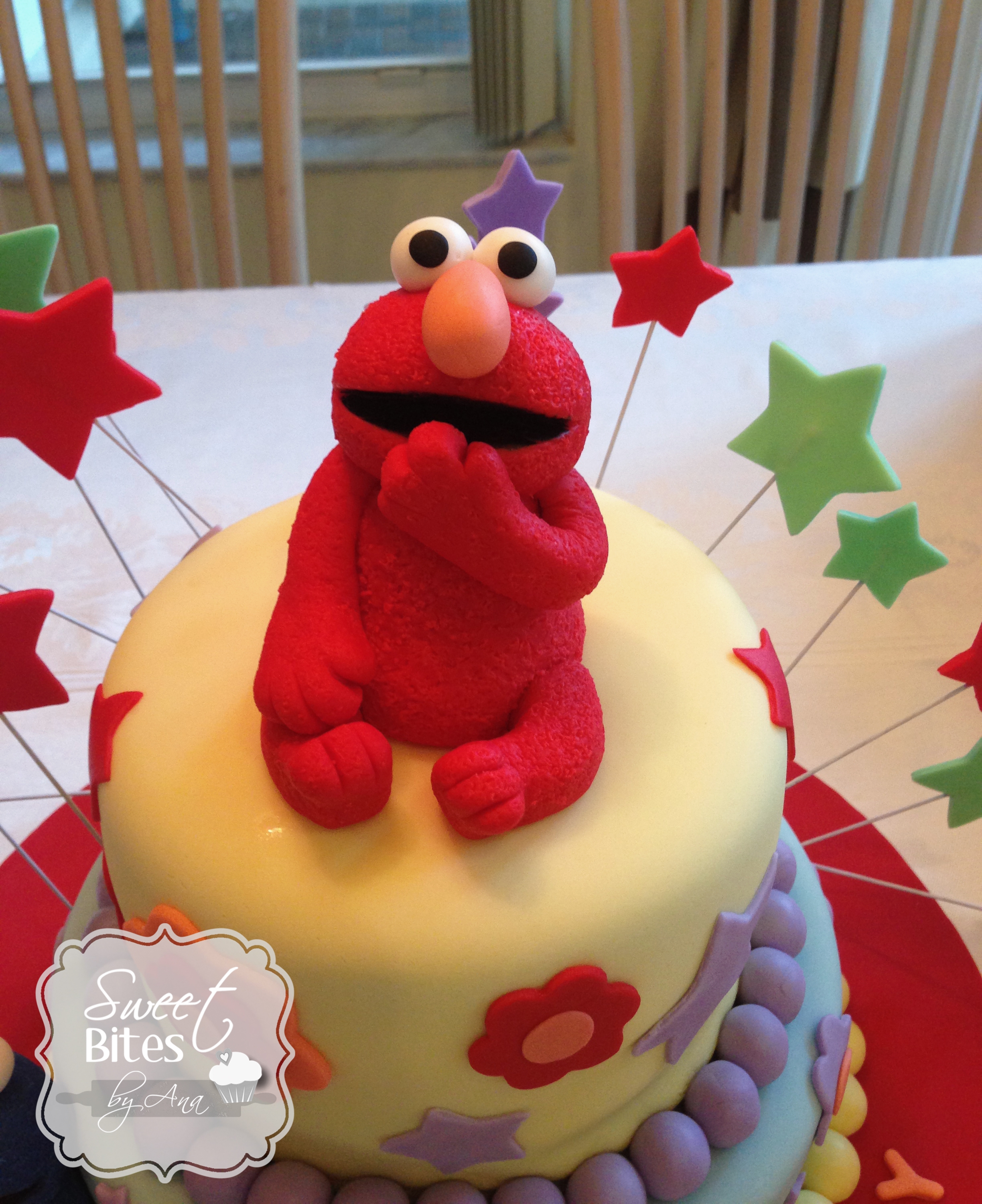 Elmo Cake for a First Birthday. Fondant Elmo and Cookie Monster. Inspiration came from a picture I saw online.