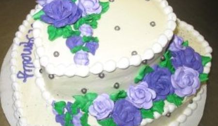 I decorated this cake with fresh flowers. The cake is decorated and frosted in whipped cream
