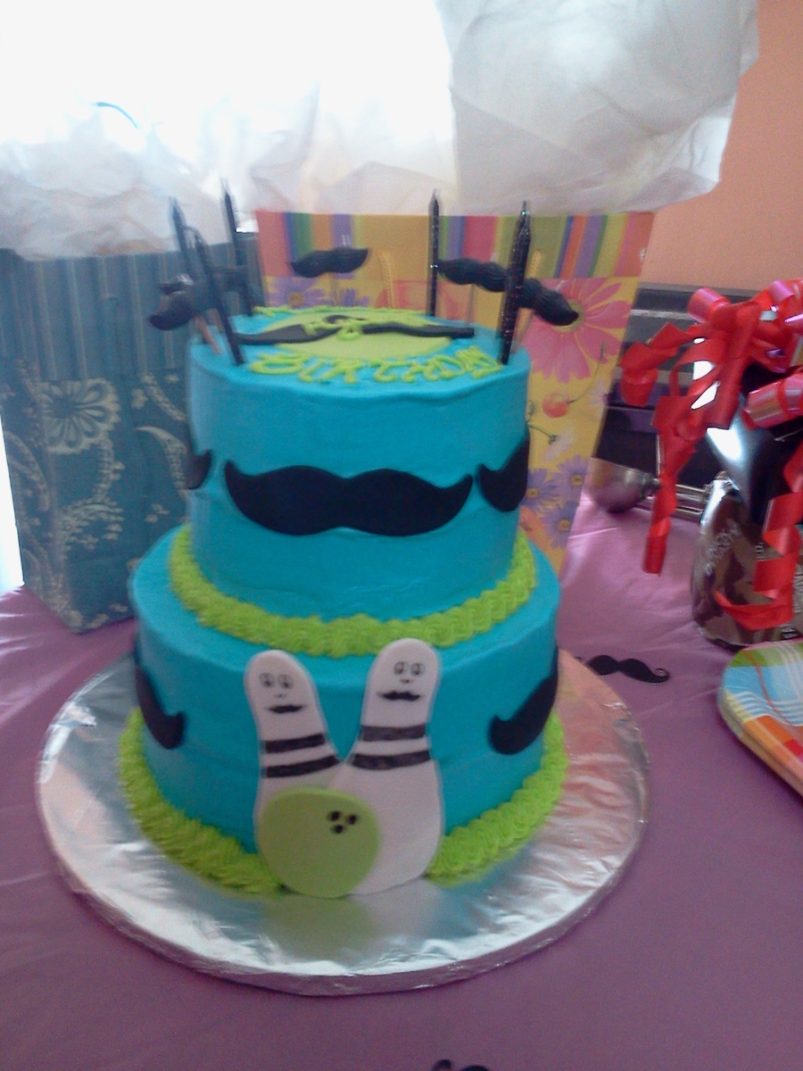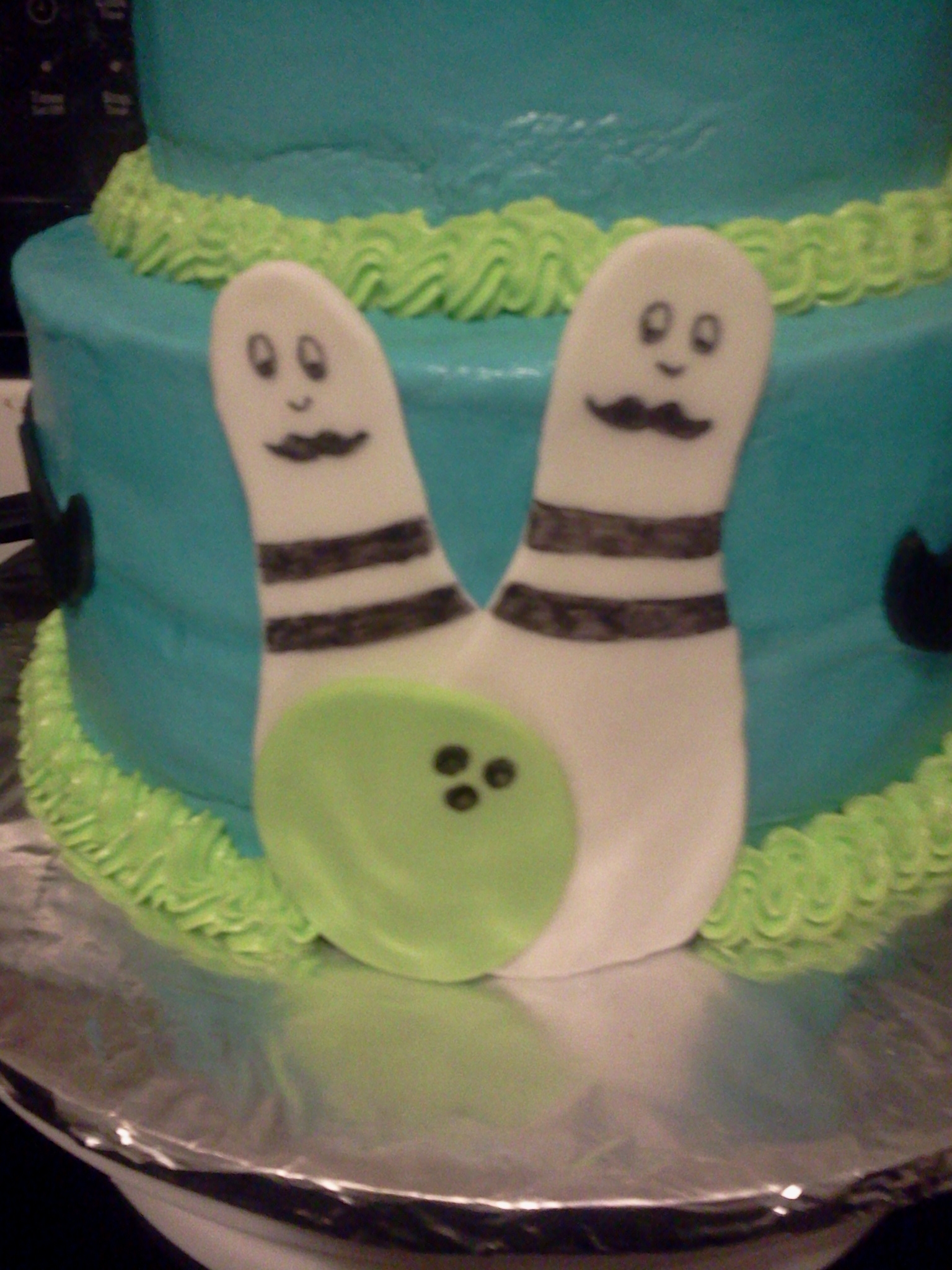 Butter Cake With Cream Cheese Buttercream Bowling Pins Amp Bowling Ball Are Gumpaste Mustaches Are Fondant The Mustaches Sticking Out O