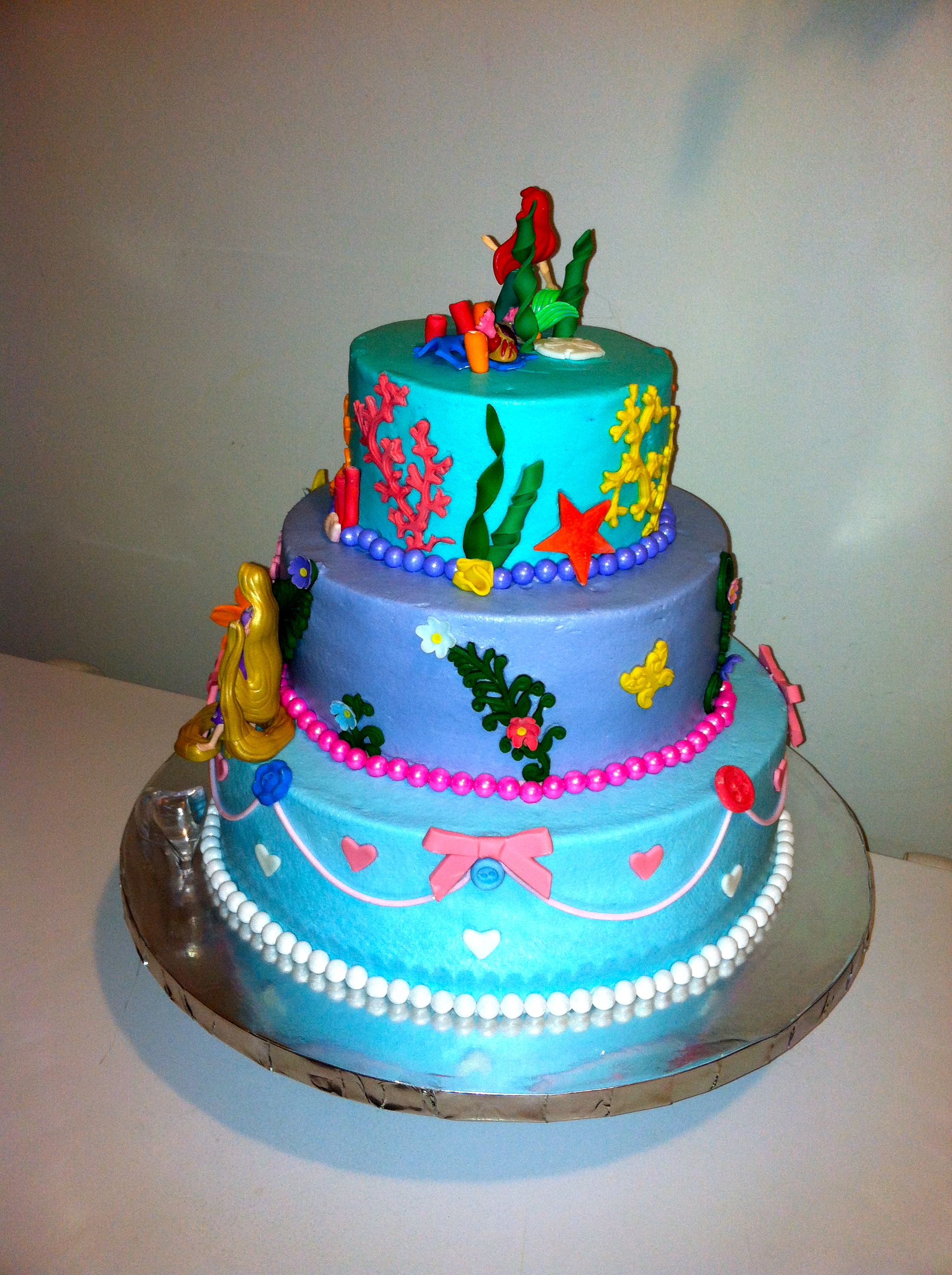 Disney Princess Cake (Arial, Rapunzel, and Cinderella) BC icing with fondant decorations