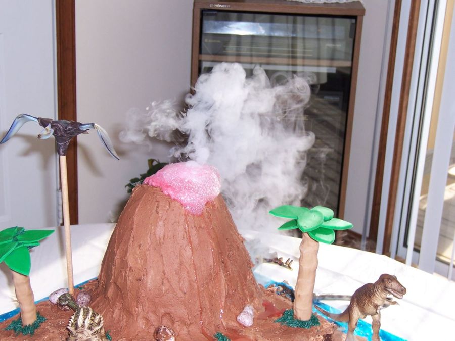 This is a close up of the volcano that was done on the dinosaur cake. My sister and I made this for my nephew. It was a big hit. We got the idea of the erupting volcano from karthurs...Thank you.
