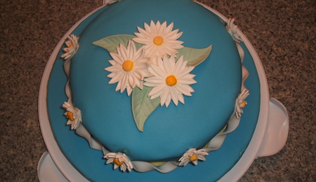 This Cake Has Fondant Roses The Cross And Pink Discs On The Side Of The Cake Are Chiocolate