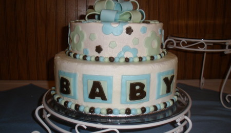 Blue, Green And Brown Baby Shower Cake