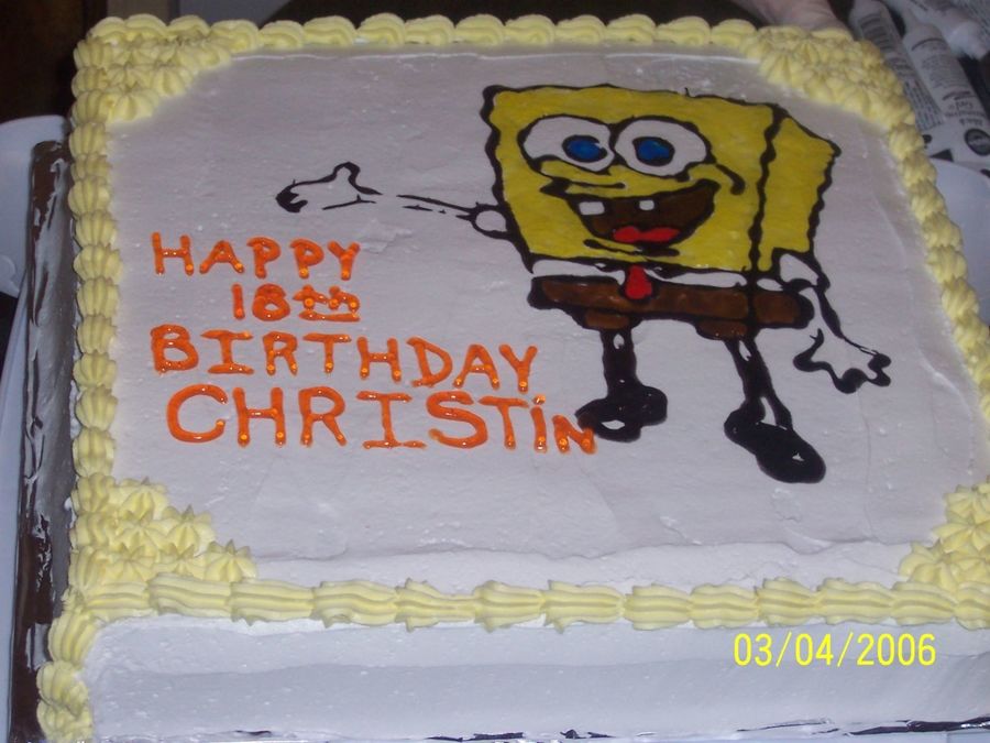 This is a confetti cake with bc icing that my daughter ask me to make for her friends 18th birthday. The image was transferred on with piping gel and filled in with Wiltons deco gel.