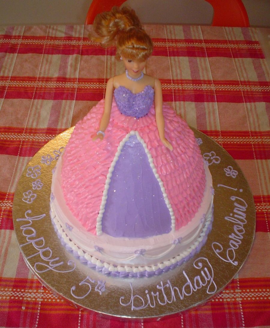First doll cake...strawberry cake with strawberry buttercream filling and buttercream icing.