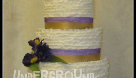 Ivory buttercream, cornelli lace design with roses and gold accents.