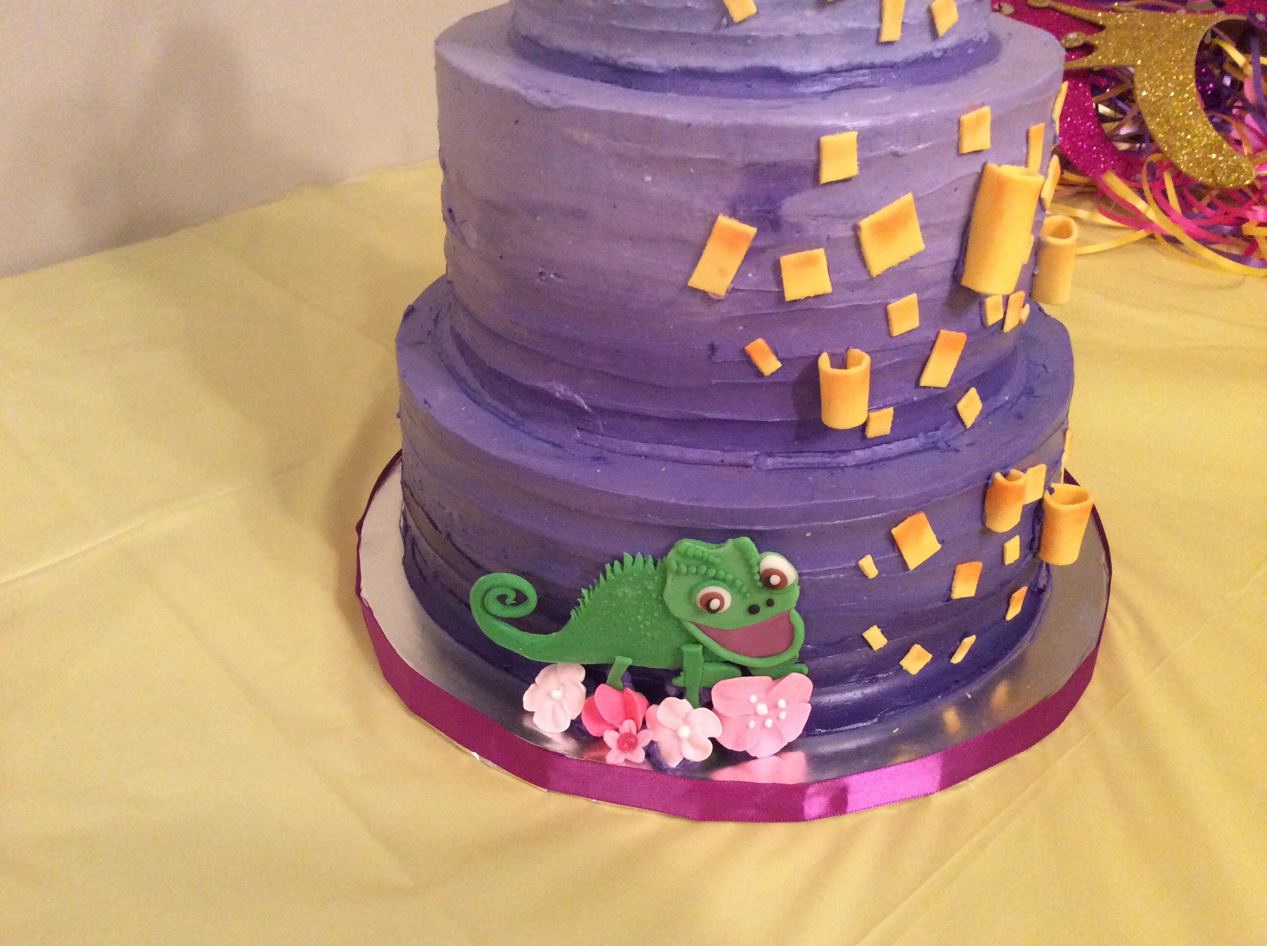 Tangled Inspired Birthday Cake The Frosting Is Banana Flavored Imbc And The Cake Is Scratch Vanilla The 4 Was Made With Gumpaste And I T
