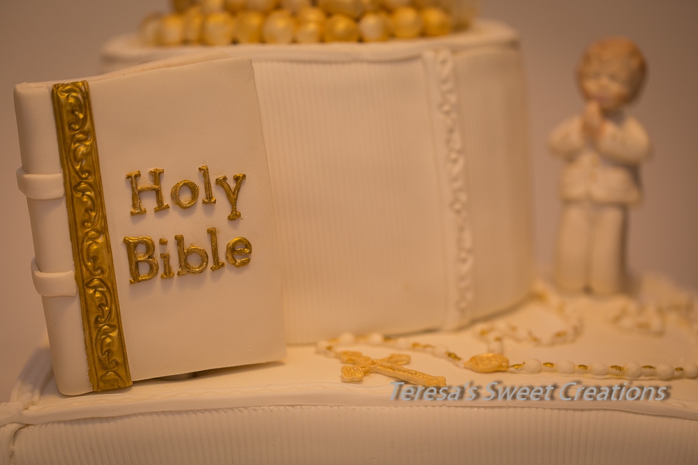 FIRST HOLY COMMUNION CAKE with chalice and bible ....all edible and handmade by me:)