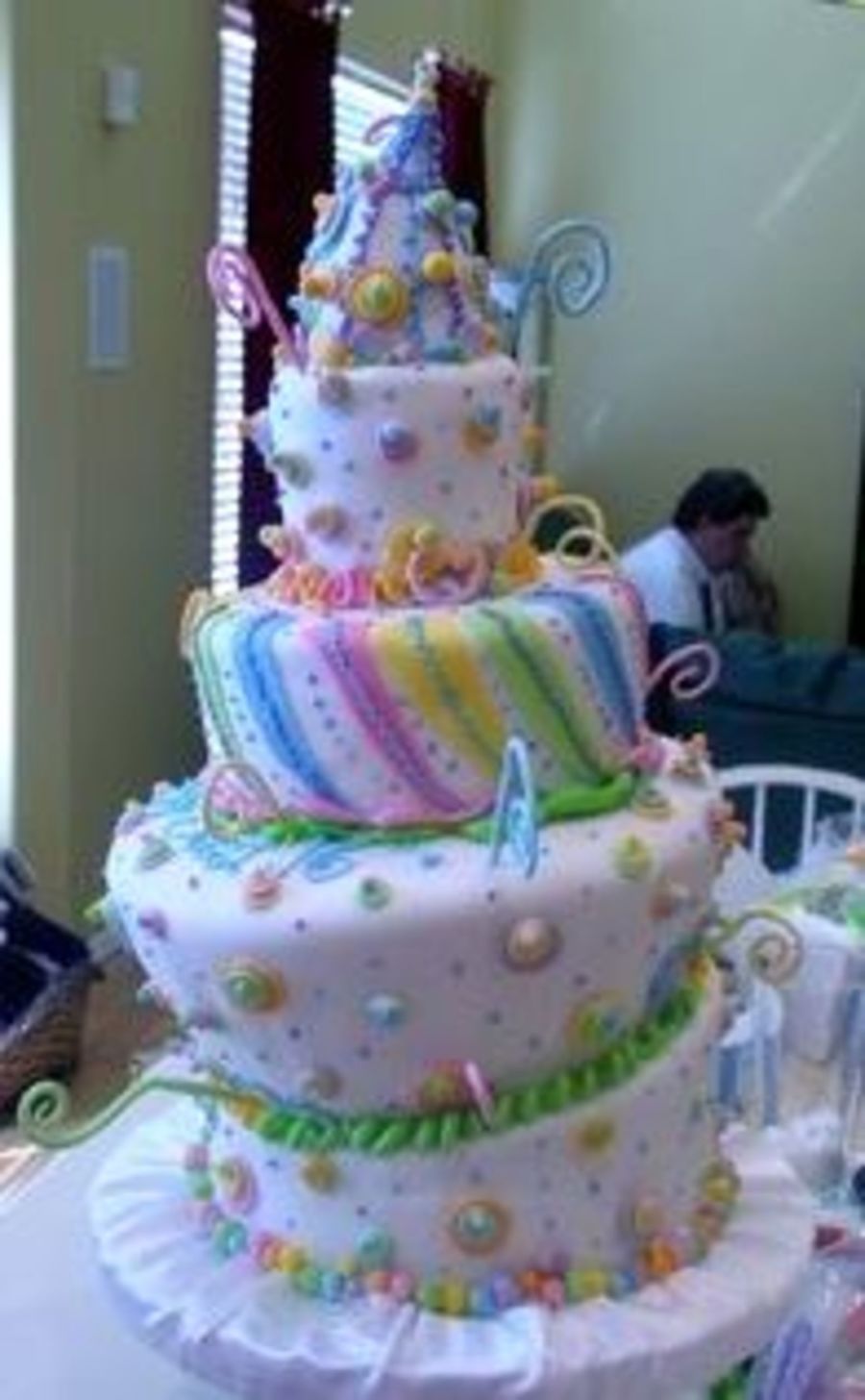 Outstanding job on this cake - can you take a closer picture(s) for us to see details? Do tell us what's inside each layer too if you don't mind.