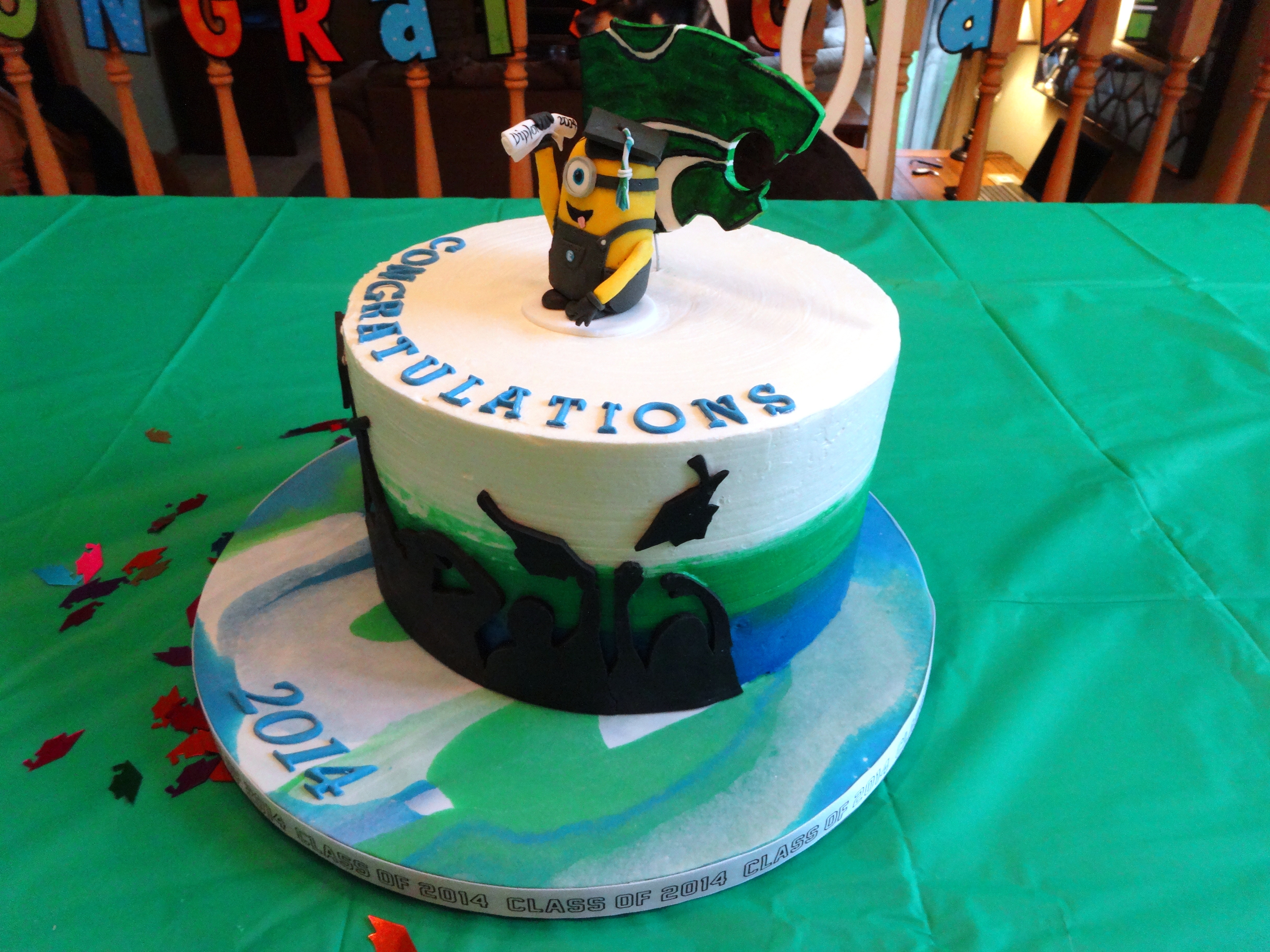 High School Graduation for Niece. She loves minions! Silhouette was to stand on own beween cake and year but we had a huge rainstorm that softened the gumpaste. Had to put on cake leaving the wierd space on cake board.