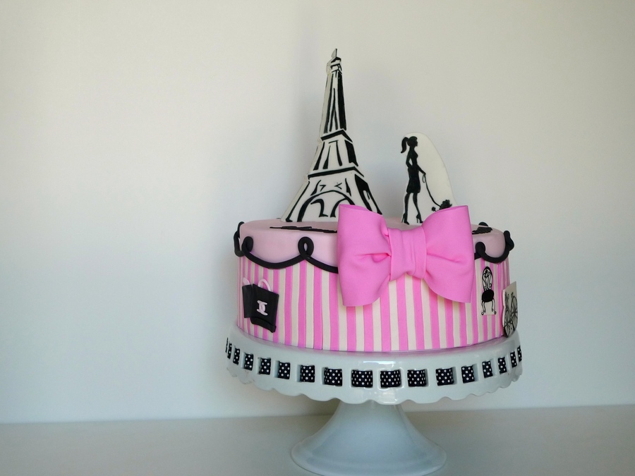 9" cake, covered in Satin Ice fondant, hand painted images, 100% edible. Stripes and swirls were attached to the cake using Jessica Harris's methods, which can be found on her blog. TFL