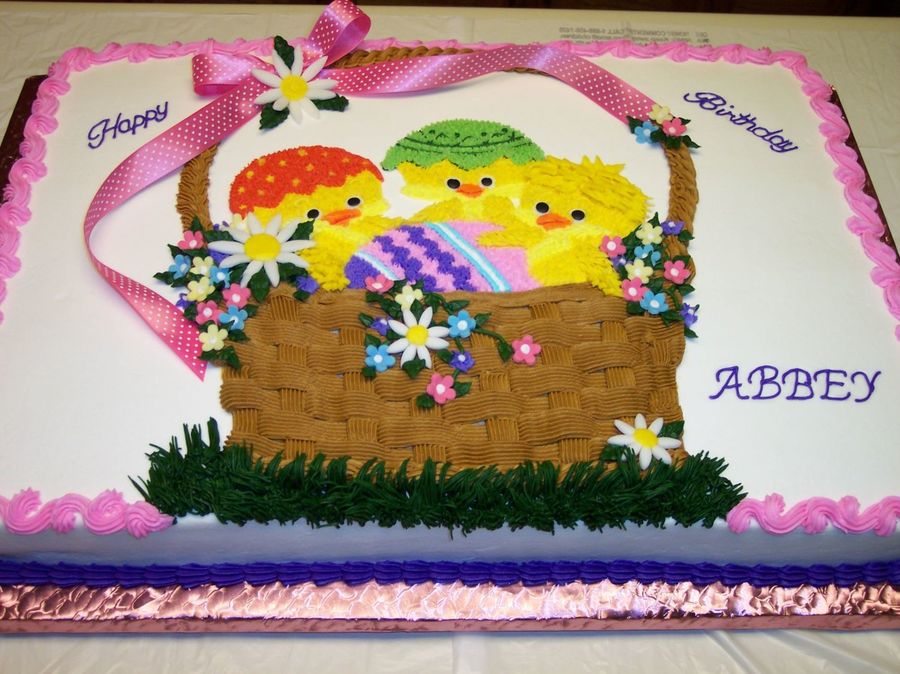 KimAZ on 9 Apr 2006 , 11:41pm Precious!! Love the baby chicks, flowers, border and how smooth you got the frosting. Great work!!