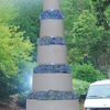 This cake was super tall! We coated the entire cake in sanding sugar. The hydrangeas were fresh. There is a very heavy Waterford crystal vase on the top.
