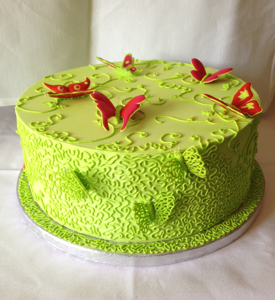 My first butterflies. Filigree and wet on wet run outs. This tutorial helped with the butterflies - http://www.cakecentral.com/t/586983/royal-icing-butterflies