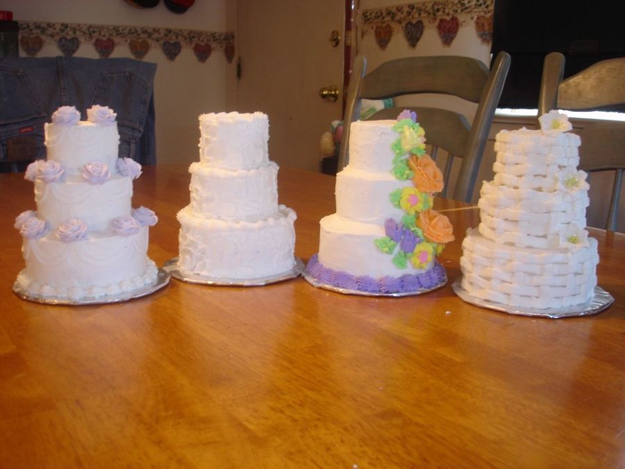 thanks to everyone. the cakes are 4 1/2",3 1/2",2 1/2" in width and all are close to 1 1/2" deep