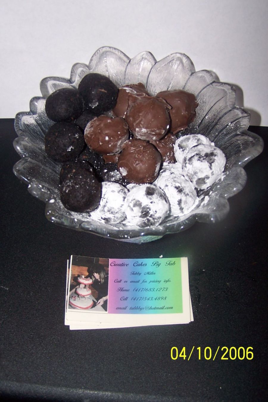 She is going to ask her bosses if I keep them stocked in cake balls, for free, if they will let me leave my business cards there with them. Her bosses wiffe used to make cakes herself so I told her to let her taste them first and see if she approves of them. I made more this afternoon. Choc/cake/rasperry extract. Yellow cake/anise extract. choc cake/banana extract. So far they've been a hit.Even my youngest son-who never tries anything new-tried the banana ones and liked them, and he doesn't like banan...