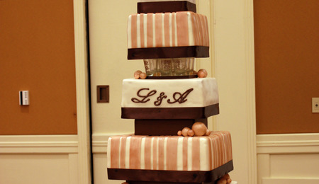 6 Tier Square Chocolate Brown And Champange Shot Glass Cake