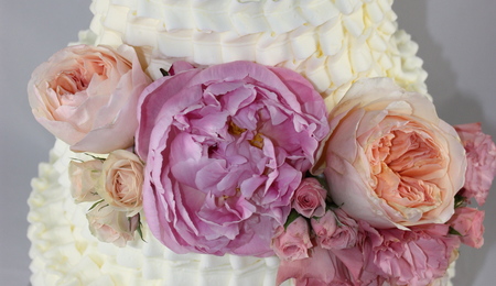 White Ruffle Buttercream Cake With Fresh Peony And Garden Roses Classic Creations Floral Design This Was A Display Cake For A Bridal Expo