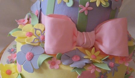Buttercream With Fondant Bow And Lace And Real Pearl Necklaces