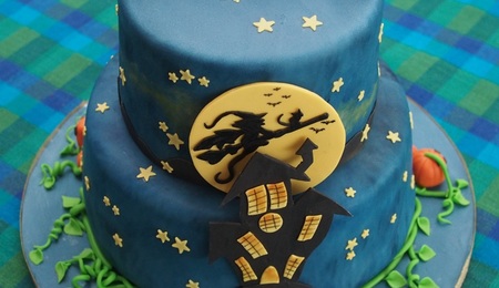 Hee Hee Cackles The Old Witch As She Rides Through The Air On Her Broom With Her Little Black Cat Tiers Are 22Cm And 15 Cm Top Tier Wh