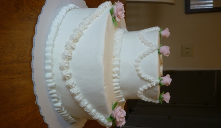 This is a luau cake I made based off of an idea my daughter found online. The top tier is chocolate and the bottom is vanilla.