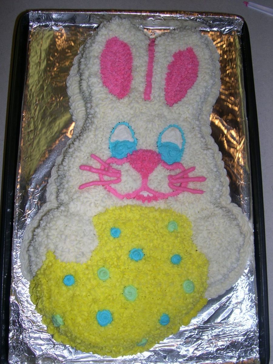 White cake with sprinkles inside to give it a spotted look, buttercream frosting. I didnt have much time for this one but it came out good. Took it for my extended family easter, they loved it.