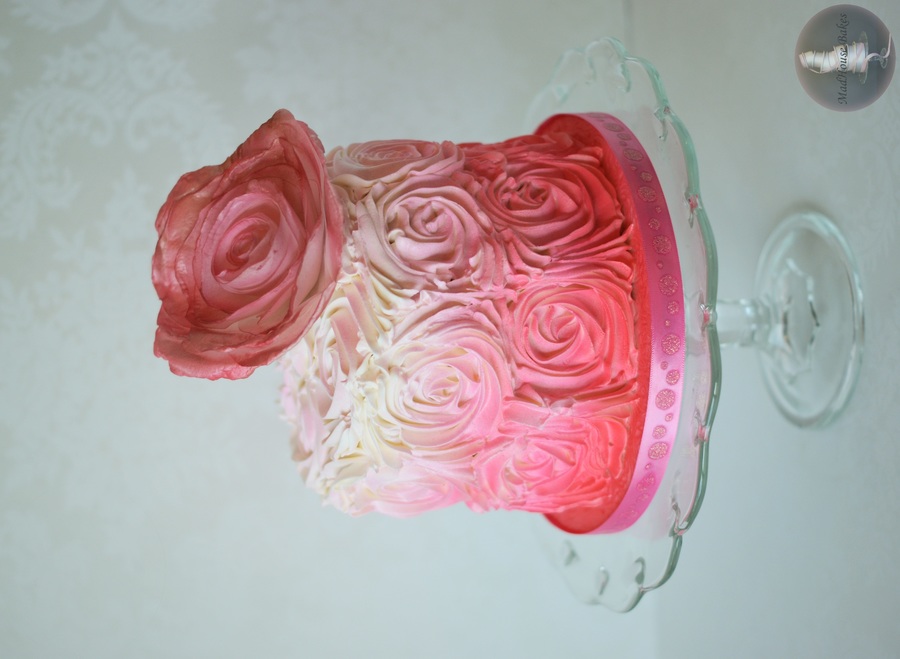 Sweet and simple. A rose ‘smash cake’ I made for my niece, Madison. Airbrushed and adorned with a wafer paper rose. Thanks for looking :)