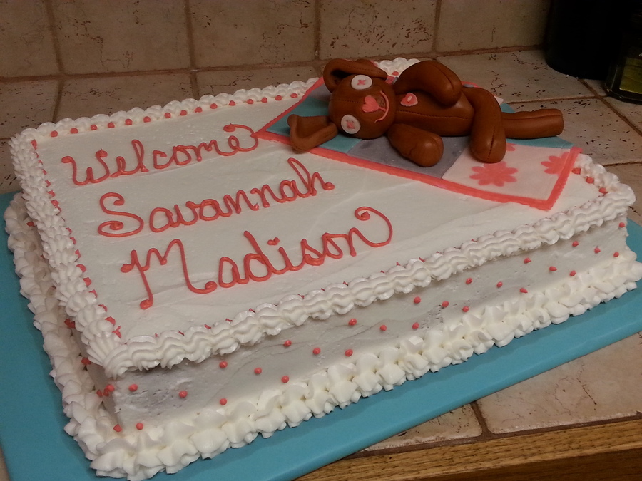 Sheet cake, half vanilla, half chocolate with Bunny and Quilt
