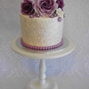 This is a 6" vanilla cake with Oreo buttercream filling. It is covered in buttercream and wrapped with edible lace. Roses are made from gumpaste and fondant.