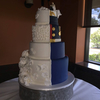 This is a wedding cake made for a Marine , they wanted half wedding and half Marine uniform.