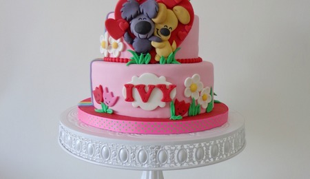 I really enjoyed making this cake. love the colours, love the theme. The whole brithday party was in this theme so the cake fitted in perfectly. With the cake I also made 60 cookies, one hell of job I might say.