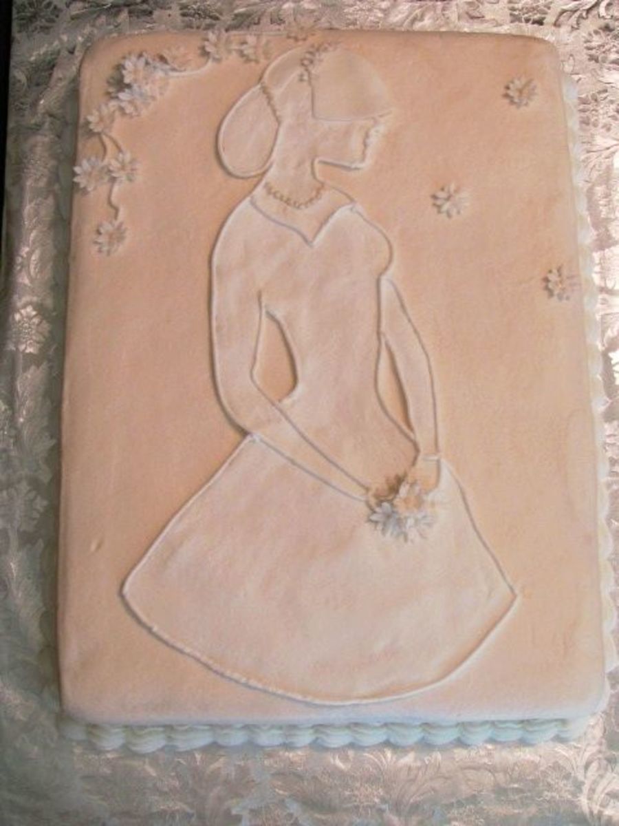 Something I tried with the wilton pattern from a past yearbook...not too crazy about it. The face gave me fits so I just made a little veil, but I think that looks bad too. Oh, well! Fondant flowers, veil, and mini pearls- everything else is buttercream.